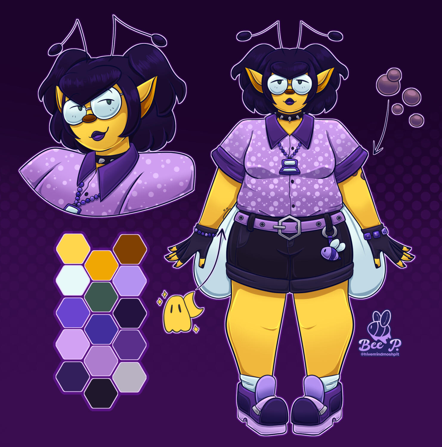 Hello! I’m Bee P. (they/them), an Illustrator and Designer who graduated Magna Cum Laude from Moore College of Art and Design in Philadelphia, Pennsylvania in 2025 with a BFA in Illustration. I love to create artwork that combines aspects of the cute, fun, and colorful cartoons I grew up with, as well as the darker, spookier themes of my current favorite horror movies and goth rock music.For Illustration, I work primarily in Clip Studio Paint, but have experience with all aspects of the Adobe Suite, even teaching Photoshop and Animate at a technology summer camp for multiple years. For Graphic Design, I tend to mostly work in Adobe Illustrator!When not working on illustrations and design, I love playing indie games, voice acting, and relaxing with my cats Kiki and Finley.